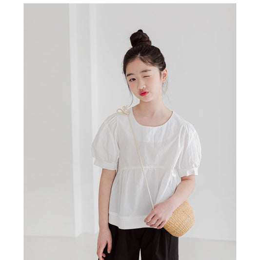 MINIROI ガールズブラウス 白 ナチュラル 半袖 ふんわり袖 パフ袖 涼しい 春夏 お出かけ着 かわいい コットン 韓国子供服 110cm 120cm 130cm 140cm 150cm