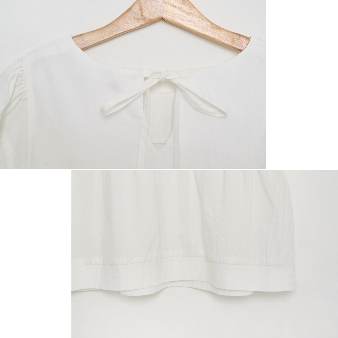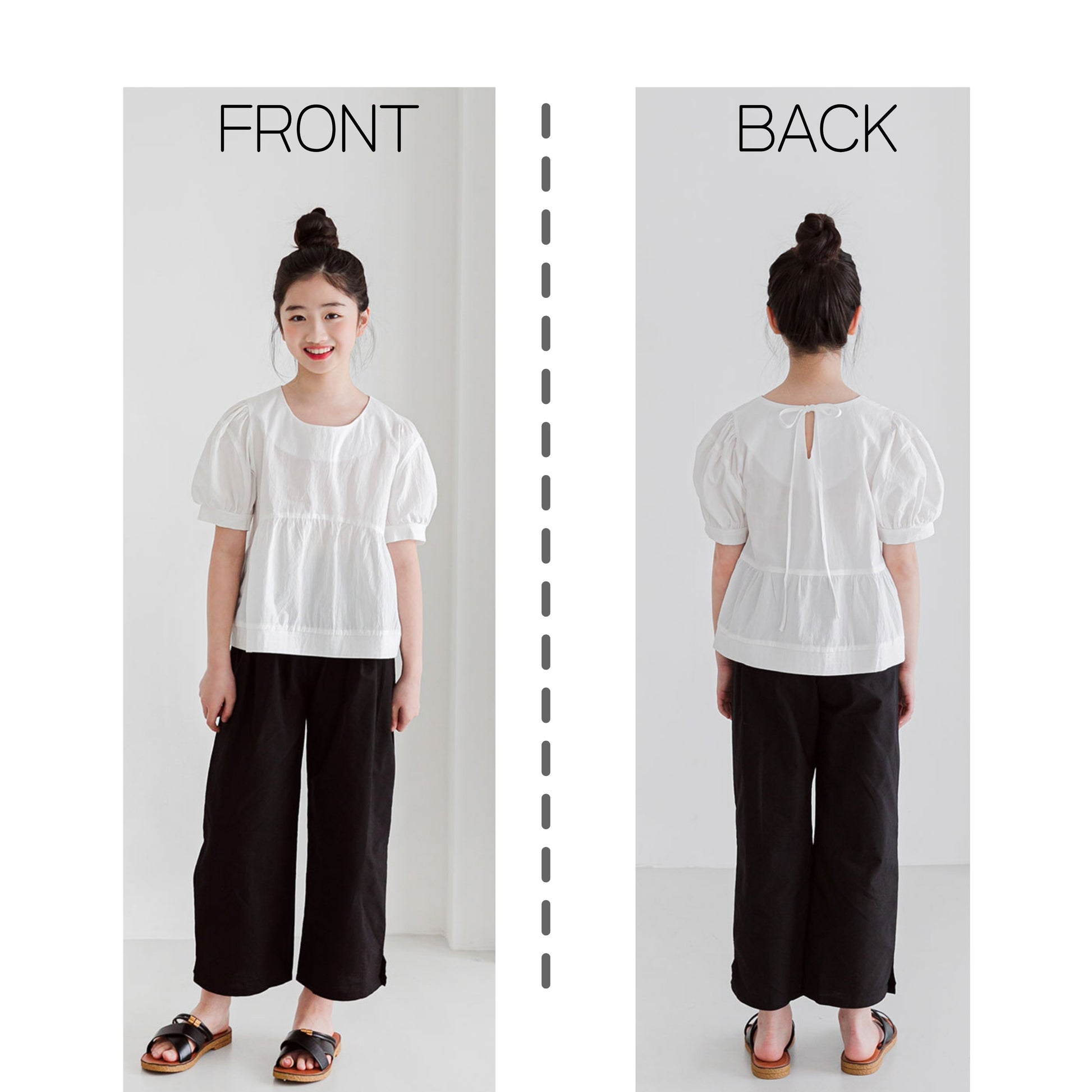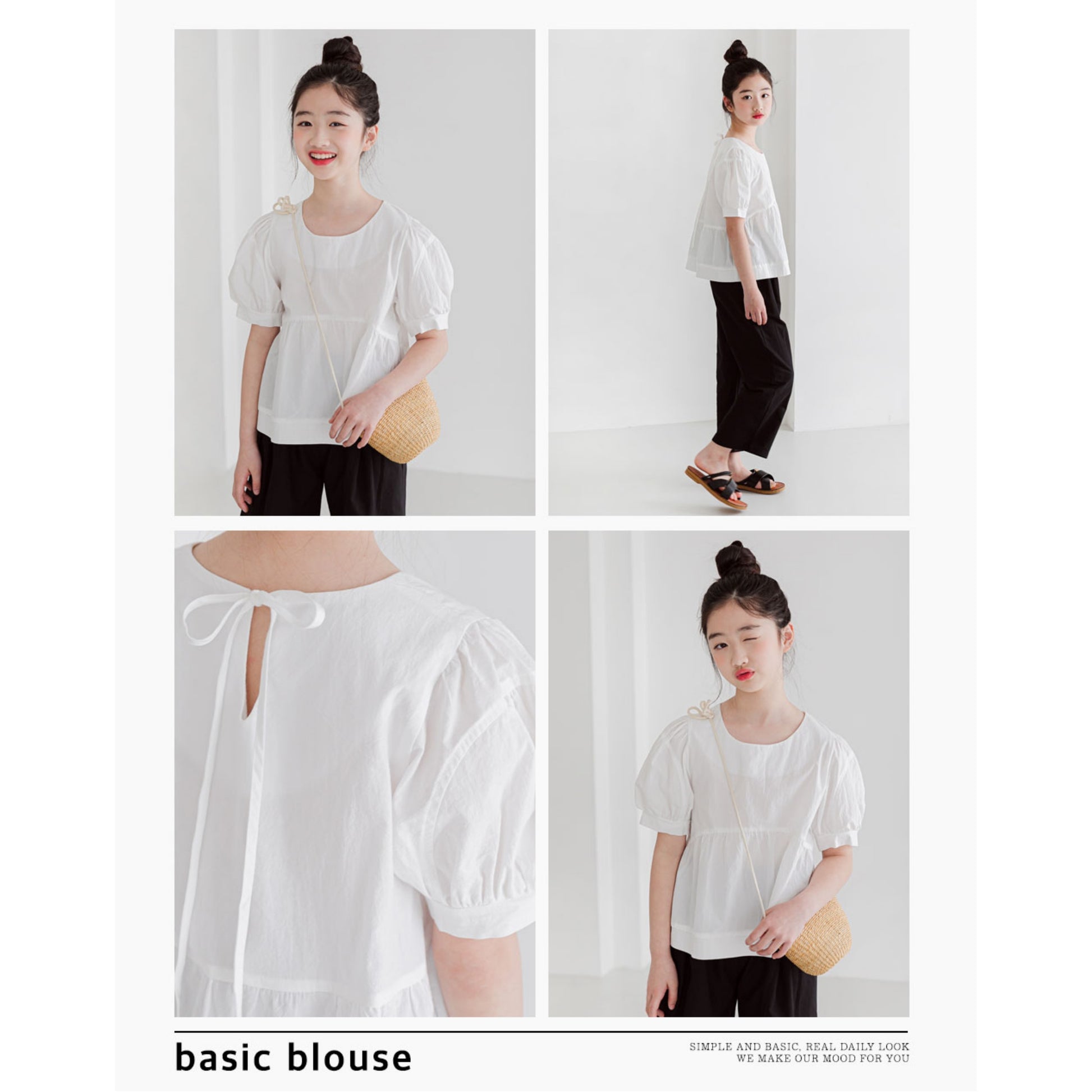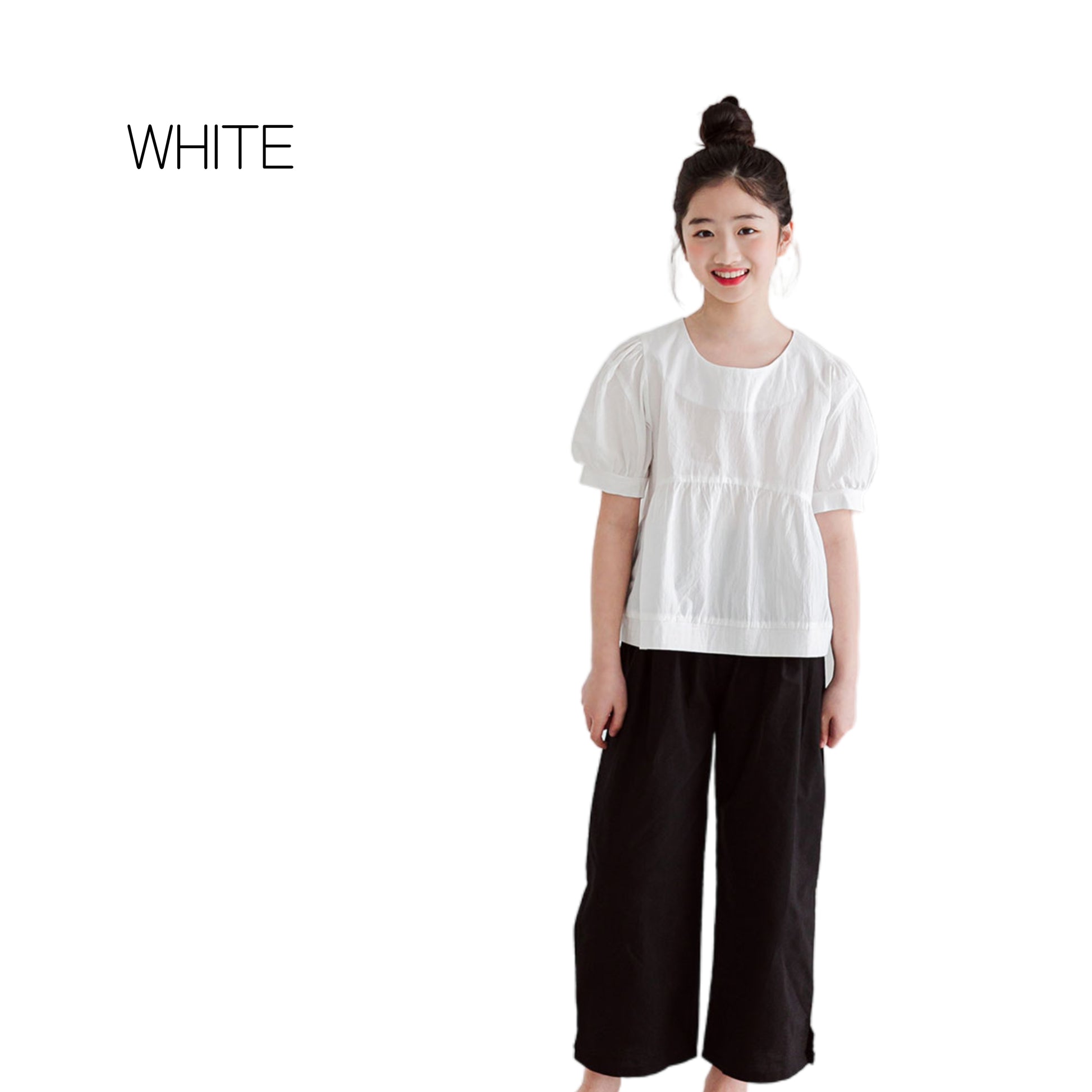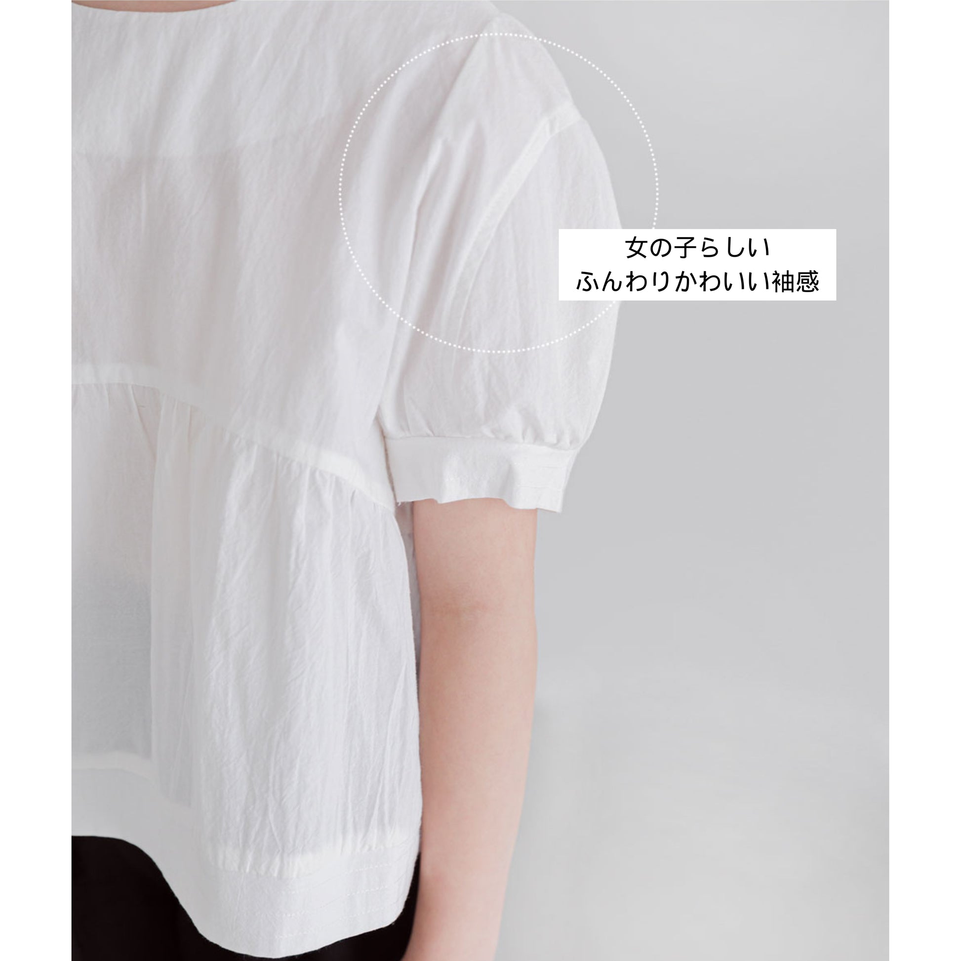 MINIROI ガールズブラウス 白 ナチュラル 半袖 ふんわり袖 パフ袖 涼しい 春夏 お出かけ着 かわいい コットン 韓国子供服 110cm 120cm 130cm 140cm 150cm
